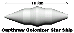 The actual construction was completed after over thirty years. Another five were required for the preparation of each new colony. They were eventually launched amid the expected fanfare and publicity. But it did not work as planned. Only months after the seven became nothing more than shrinking red stars in the sky, little had changed in the colonies. On the home world, resentment grew over what was seen as an obscene waste of resources that would benefit only a handful of future Capthraw not even hatched yet. In the long run, most believed that the seven were lost, never to be heard from again. All the millions of Capthraw souls from the ships forever trapped between the stars. For a basic and ancient belief of the Capthraw was "Proximity Reincarnation," that the soul can only re-enter the life plane from where they left it in their previous incarnation; The physical location of one's death. So if one dies in interstellar space, the soul becomes trapped on the other side. It was mainly the fundamentalists that still held onto these old beliefs. But when the disenchanted populace turned on their leaders, the ancient ways again seemed more viable than the corrupt modern society that had banished their own children to spiritual suicide. The religious flames were fanned by those who had much to gain in both power and wealth. The Dravpheim Corporation was soon able to leverage itself in the economic and social chaos to initiate a hostile take-over of the Empire. It became then the Dravpheim Syndicate. It was all very business-like and efficient. The resources earmarked for the next wave of star ships was redirected to the new seat of power in the Asteroid belt. Soon after, it was the home world of Thrawn that became the colony. Only the Seeraen colonies remained loyal to the old Empire, to their final detriment. Then the Great Shower occurred and cemented the belt's power base for the untold eons that followed. As for the seven, they were never heard from again on Thrawn. Communications during the interstellar journey was rendered impossible by the glare of the propulsion systems. And after those that survived finally did arrive, no one was around to receive the first messages. The Syndicate, after tens of thousands of years cared not for the squeaks and squawks from tiny points of light in the black. They were more focused on the local material plane, and the control there of. Only the automated electronic ears put in place by the Seeraen Librarians were there to record those whispers from the stars. Whispers that went unanswered.